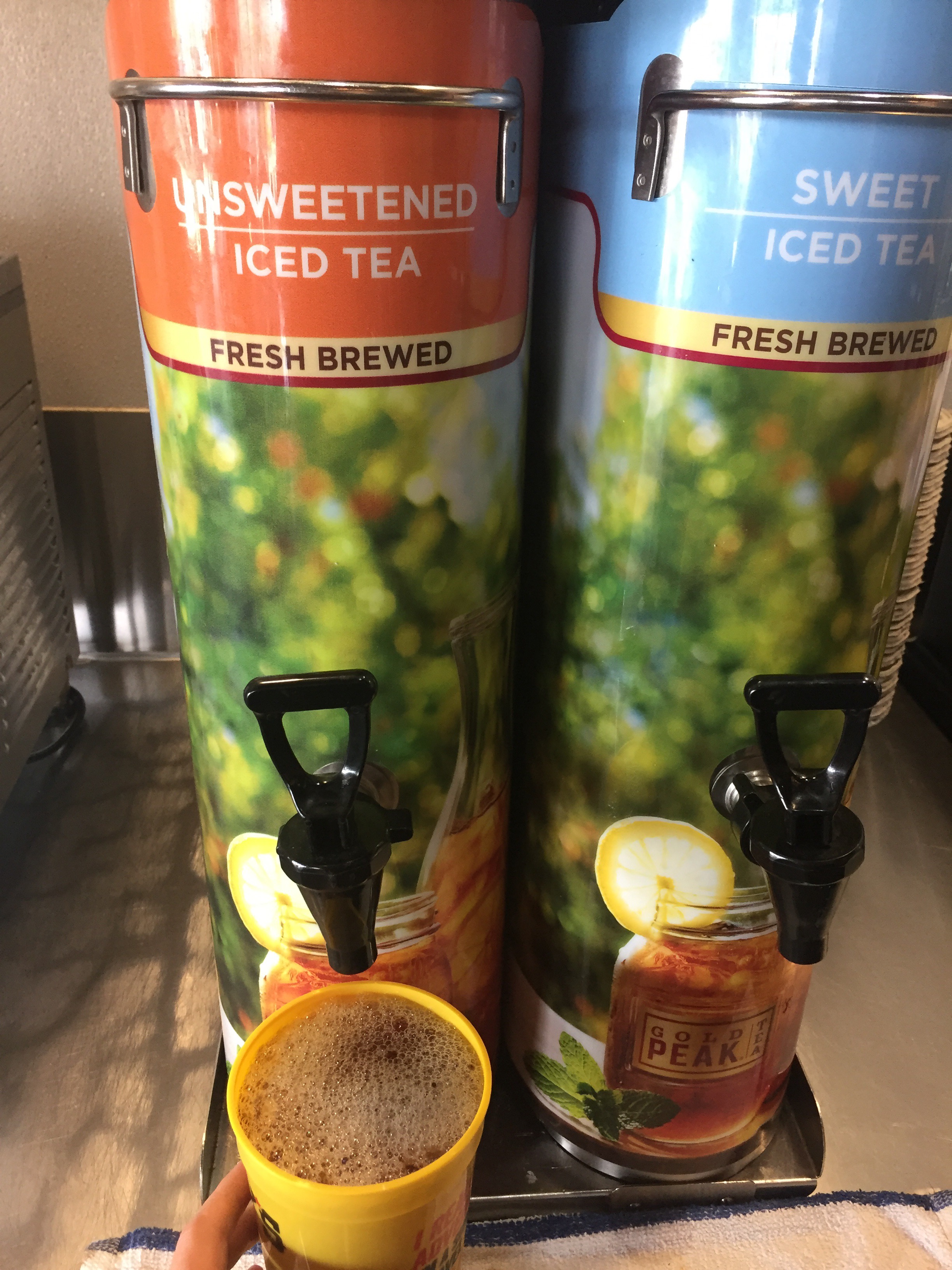 Dickey’s serves really good tasting fresh brewed Gold Peak iced tea. The tea seems to be brewed more consistently than places like Jack-in-the-box, which is why I gave them a half a point higher rating. They also have the small ice cubes like Chick-fil-A, which I enjoy. Dickey’s offers free self-serve refills and the price is similar to fast food restaurants at $2.70 for a large.